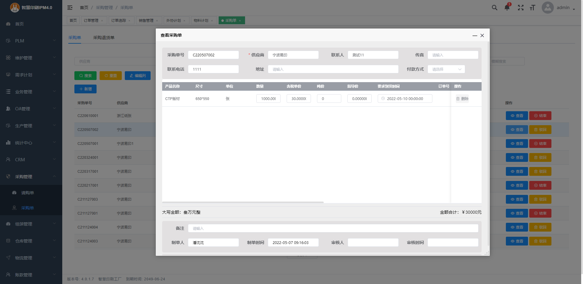3.采購單自帶換算功能,張,重量,平方, 米自動換算,填寫噸價自動產生單價。