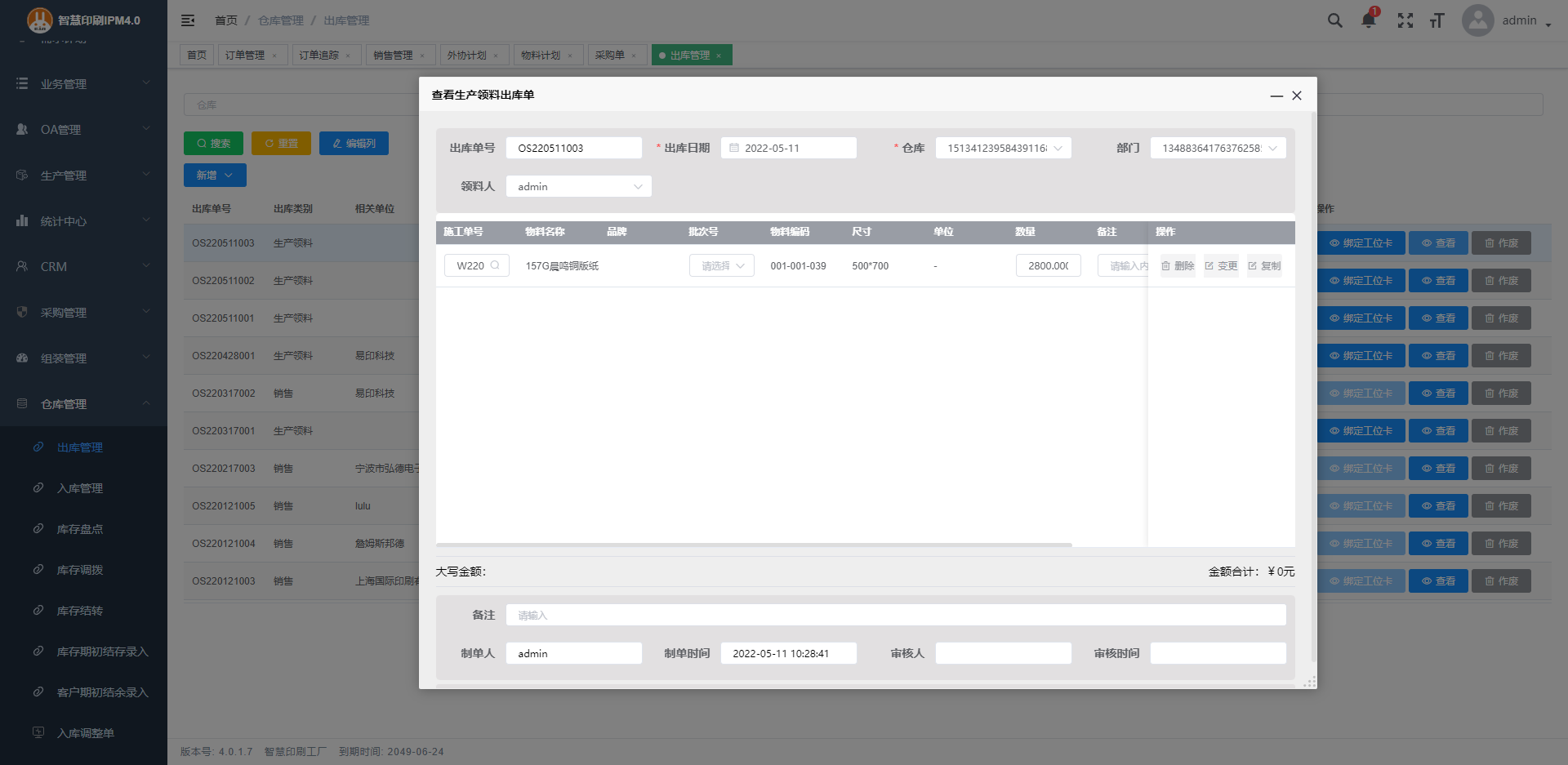 3.領料出庫單的數據都自動從工單帶。
