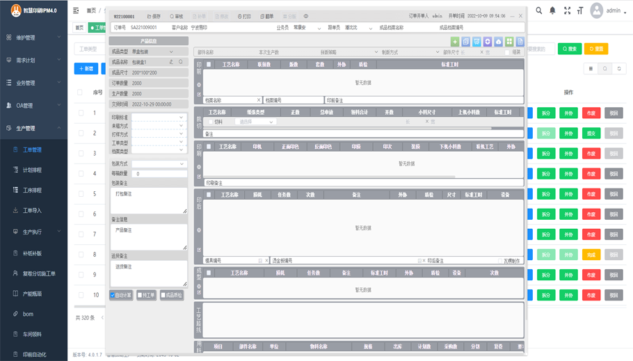 3.選擇不同成品類別可以出現不同界面,系統能支持印刷行業各種業務類型。