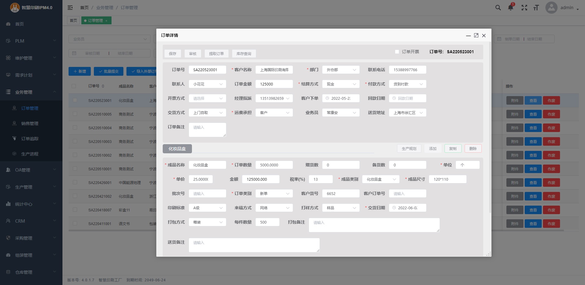 4.文件管理:業務訂單支持上傳文件,可以在生產過程中查看。