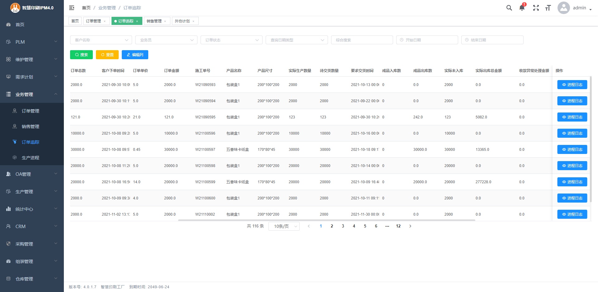 1.業務可以在線查看動態生產進度、完工數量、出貨量、開票情況、收款情況 。
